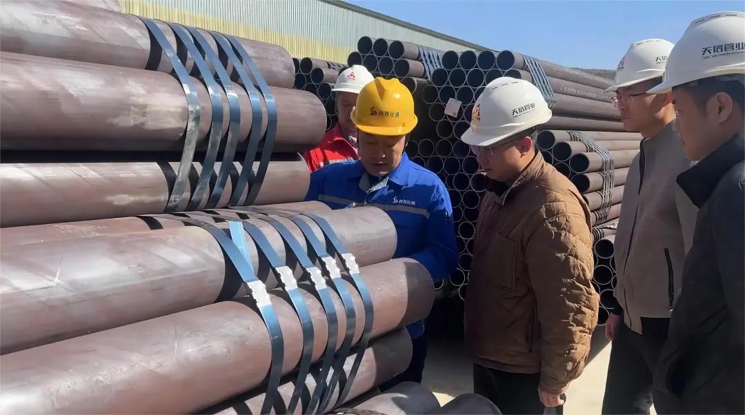3月1日,延長石油集團油氣勘探公司和陜西化建工程有限責任公司組織相關部門負責人在勘探公司劉昊科長的帶領下蒞臨天信管業科技集團有限公司,檢查指導工作。